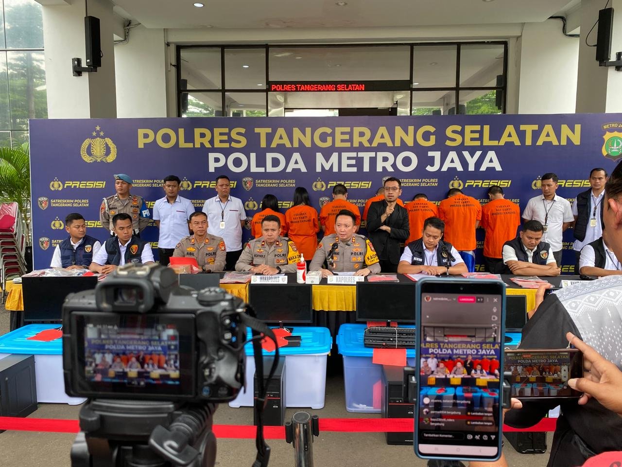 Kali ini Sat Reskrim Polres Tangsel berhasil mengungkap kasus judi online (judol) jaringan internasional dengan mengamankan tujuh (7) orang tersangka terdiri dari lima tersangka laki laki dan dua orang perempuan.