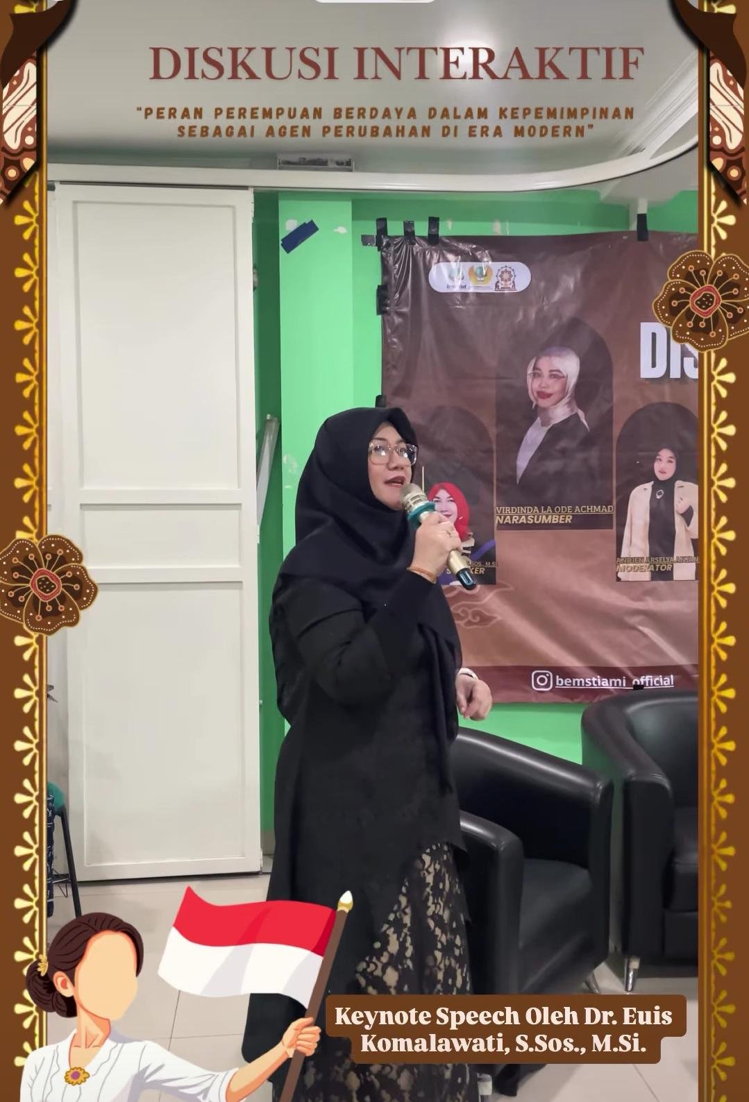 Kegiatan yang diikuti sekitar 50 peserta ini berlangsung secara tertutup dan dihadiri sejumlah pihak, di antaranya Presiden Mahasiswa BEM STIAMI M. Rizky, Wakil Presiden Mahasiswa Andien Arsyela Anjani, influencer Virdinda La Ode Achmad, Ketua Pelaksana Nur Afifah, serta Dr. Euis Komalawati, S.Sos., M.Si. sebagai keynote speaker. Turut hadir pula Fauzi Fahmi, S.AB., M.A selaku Kepala Bagian Pengembangan Kreatifitas Mahasiswa.