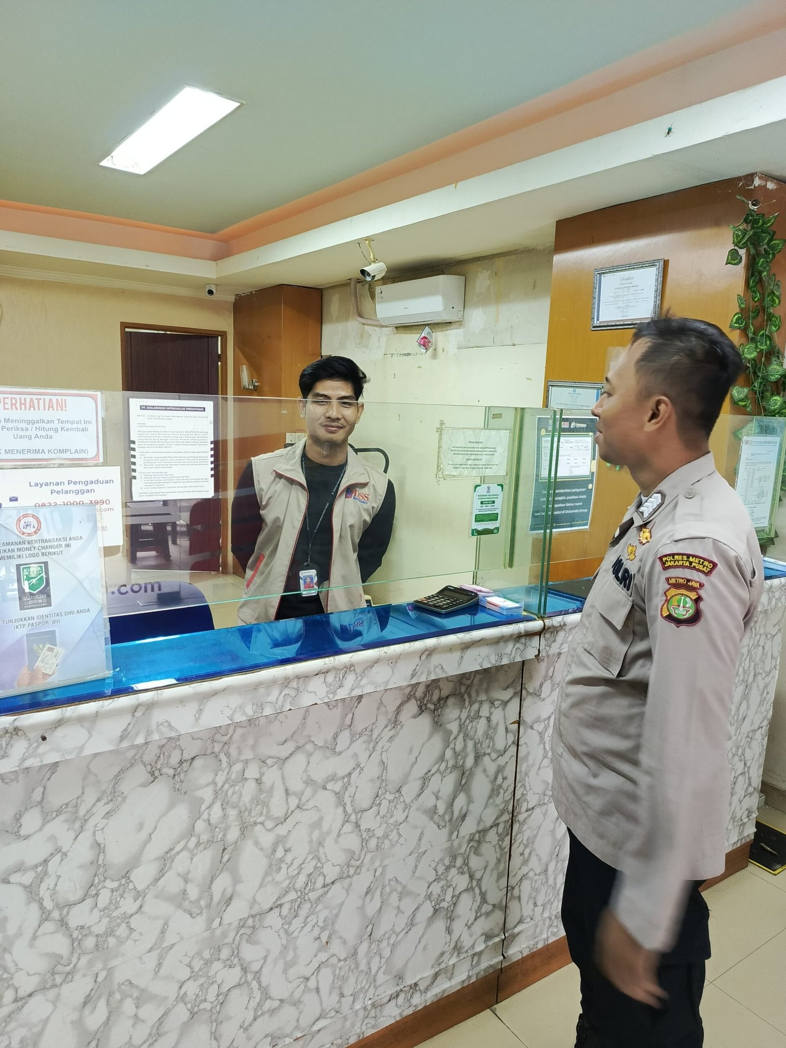 Dalam kegiatan tersebut, Bripka Ricky berkoordinasi dengan Makmur, salah satu petugas satuan pengamanan (Satpam) di lokasi, guna menjalin komunikasi yang baik serta memastikan situasi tetap aman dan kondusif. Ia memberikan imbauan kepada Satpam serta karyawan mengenai pentingnya meningkatkan kewaspadaan dalam bekerja, terutama dalam mengidentifikasi potensi ancaman tindak kejahatan, seperti peredaran uang palsu, pencurian, atau tindakan kriminal lainnya yang mungkin terjadi di lingkungan penukaran uang.