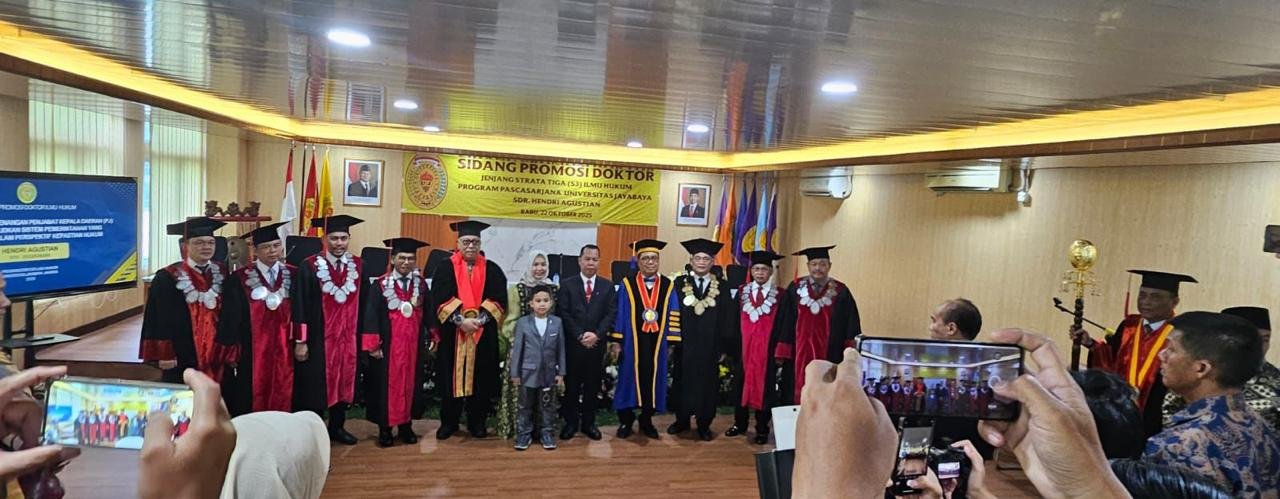 refubliknews.com,- Jakarta, 22 Oktober 2025 — Program Pascasarjana Universitas Jayabaya kembali mencatatkan prestasi akademik penting melalui penyelenggaraan Sidang Promosi Doktor Ilmu Hukum bagi kandidat doktor Hendri Agustian, yang mengangkat disertasi berjudul “Reformulasi Kewenangan Penjabat Kepala Daerah (PJ) untuk Mewujudkan Sistem Pemerintahan yang Demokratis dalam Perspektif Kepastian Hukum.”