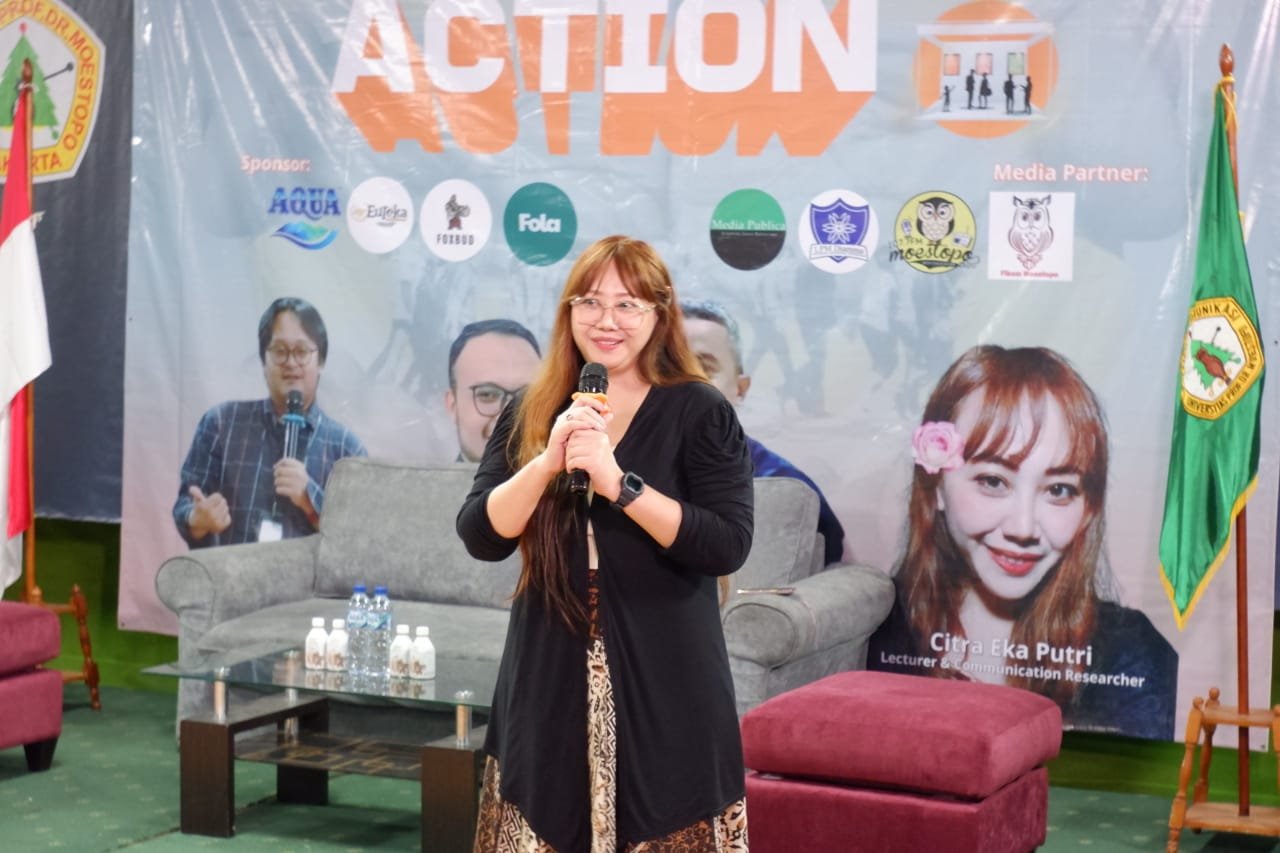 Materi utama disampaikan oleh Kepala Bagian Humas, Promosi, dan PMB Universitas Prof. Dr. Moestopo (Beragama), Citra Eka Putri, S.I.Kom., M.I.Kom. Ia menjelaskan bahwa influencer kini menjadi aktor baru dalam komunikasi massa digital yang memiliki kemampuan besar dalam membentuk opini, perilaku, hingga cara berpikir masyarakat.