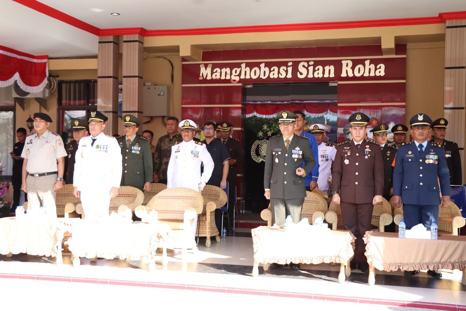 Upacara dipimpin langsung oleh Kapolres Tapanuli Tengah, AKBP Wahyu Endrajaya, S.I.K., M.Si., selaku Inspektur Upacara. Acara turut dihadiri Wakil Bupati Tapanuli Tengah Mahmud Efendi Lubis, Dandenpom 1/2 Sibolga Letkol CPM Rajiman Saragih, SH, serta perwakilan dari sejumlah instansi strategis seperti Korem 023/KS, Kodim 0211/TT, Lanal Sibolga, Sat Radar 234 Sibolga, Pengadilan Negeri dan Kejaksaan Negeri Sibolga, Imigrasi dan KKP Sibolga, BPN Tapteng, Pos SAR Sibolga, KPU dan Bawaslu Tapteng, serta pimpinan lembaga mitra lainnya. Tidak ketinggalan, jajaran Kabag, Kasatfung, Kapolsek, Bhayangkari, purnawirawan Polri, Warakawuri, dan tamu undangan lainnya turut memeriahkan kegiatan ini.