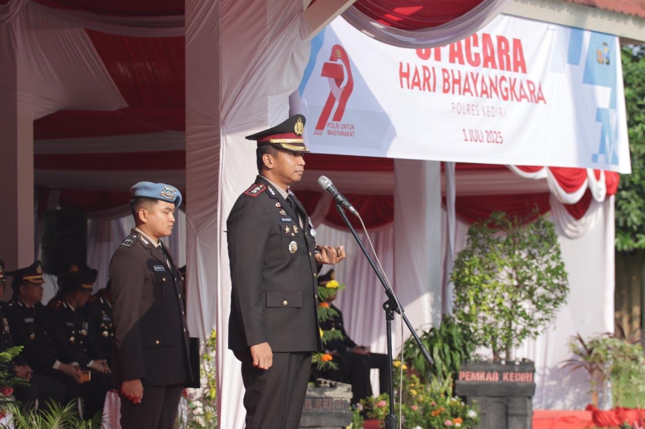 Kapolres Kediri AKBP Bimo Ariyanto, S.H., S.I.K. memimpin langsung upacara dan membacakan amanat Kapolda Jawa Timur Irjen Pol Drs. Nanang Avianto, M.Si.
