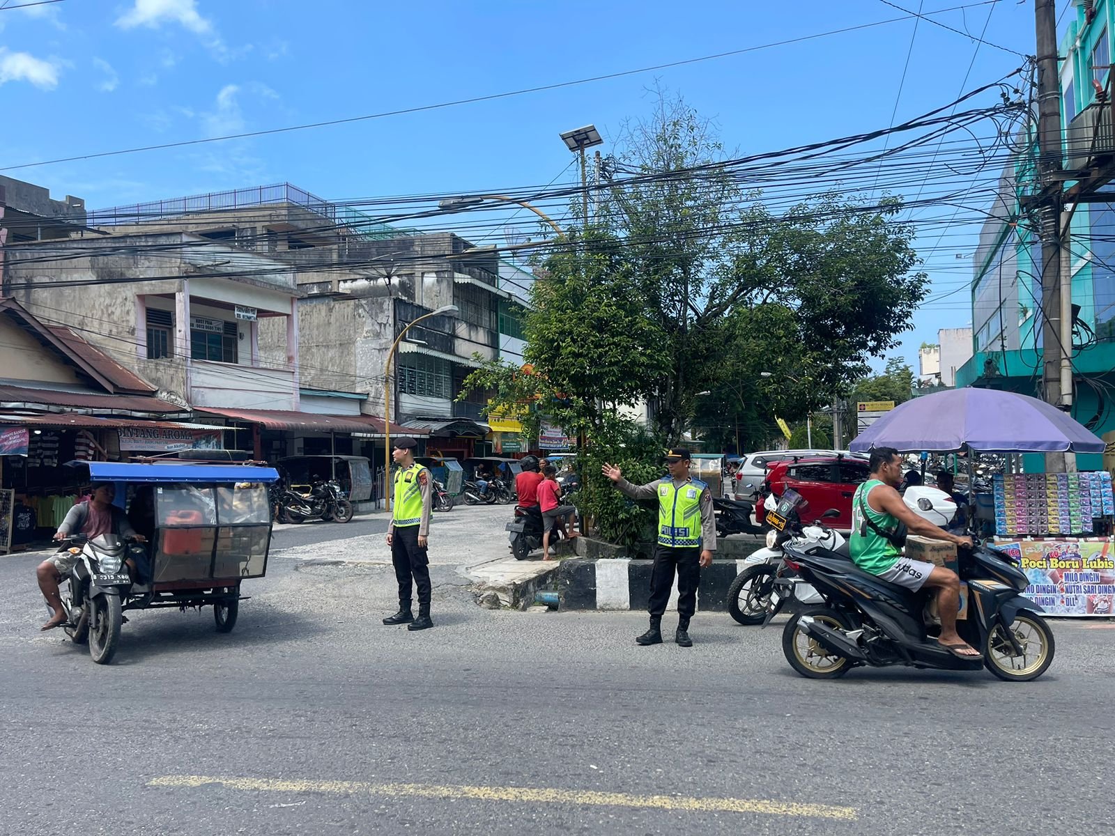SIBOLGA – Satgas Kamsel Ops Ketupat Toba 2024 Polres Sibolga dan Pos Pelayanan Aido, Pos Terpadu Simpang Lima dan Pos Pengamanan Pelabuhan Lama Sibolga, melaksanakan Rakayasa Lalu Lintas dan Pengaturan arus lalu lintas di sepanjang Jalan S.M. Raja, Jalan Horas dan Jalan R. Suprapto Kota Sibolga, Sabtu (13/04/2024).