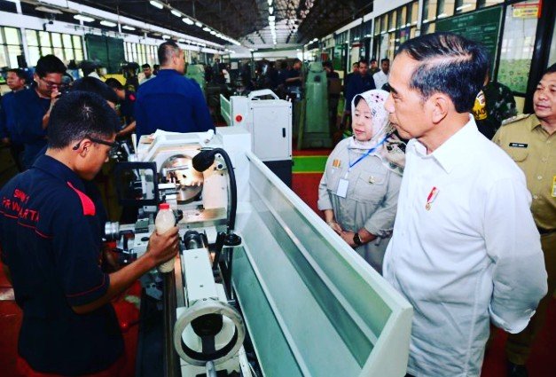 “Kalau ini saya bandingkan dengan SMK yang lain sangat bagus, di jurusan-jurusan tadi, di mesin tadi saya lihat dari penataan layout, kebersihan bengkel kerjanya juga bagus, cara kerja menghidupkan mesinnya bagus,” ucap Jokowi usai peninjauan.