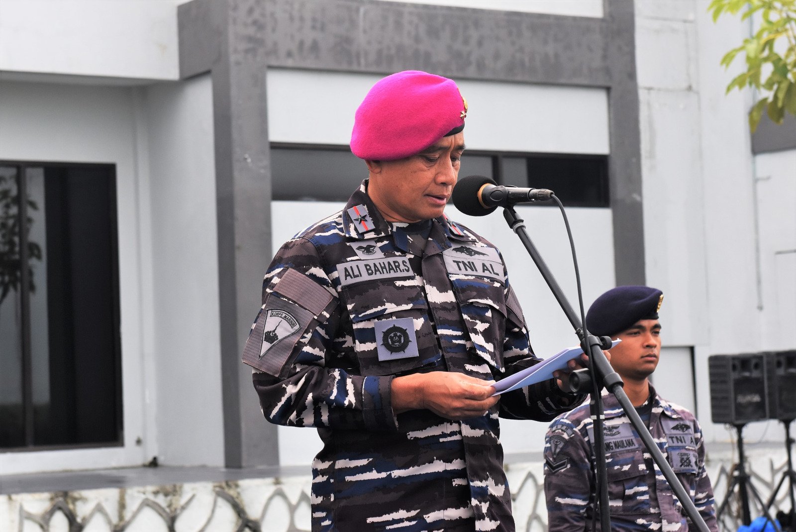 Wadan Kodaeral I selaku Pimpinan Apel membacakan amanat Kepala Staf Angkatan Laut (Kasal) Laksamana TNI Dr. Muhammad Ali, S.E., M.M., M.Tr.Opsla., yang mengangkat tema “Dengan Semangat Baru Puskesal, Ciptakan Tenaga Kesehatan Profesional, Bangun Prajurit Matra Laut Kuat, Guna Mendukung Indonesia Maju.”