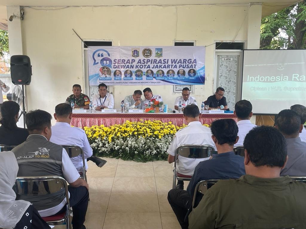 Jakarta Pusat (10/5). Wadanramil 01/Menteng Kapten Kav Jimmy Cristian Neno menghadiri kegiatan Serap Aspirasi Dewan Kota Administrasi Jakarta Pusat Tahun 2023 bertempat di RPTRA Borobudur Jl. Borobudur Kelurahan Pegangsaan Kec. Menteng