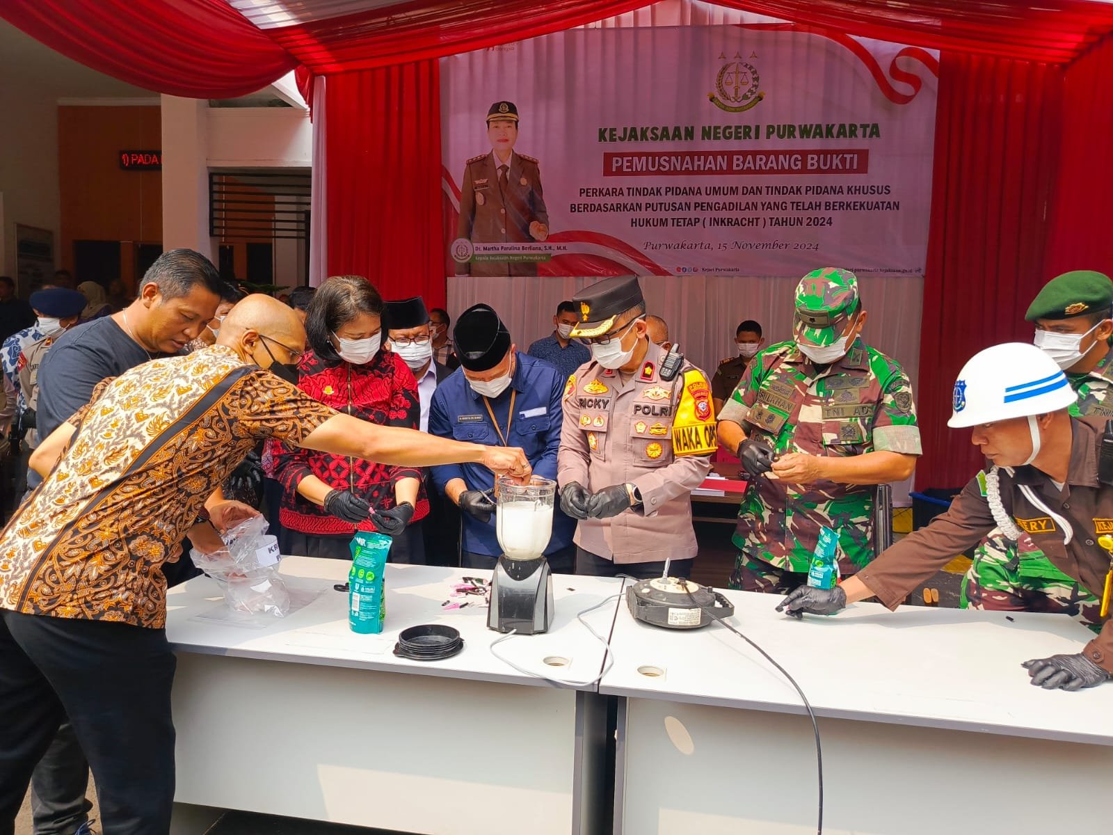 refubliknews.com,-Purwakarta – Kapolres Purwakarta, AKBP Lilik Ardiansyah diwakili Wakapolres, Kompol Ricky Ardipratama menghadiri pemusnahan barang bukti tindak pidana umum yang telah memiliki kekuatan hukum tetap (incracth) di Kantor Kejaksaan Negeri Purwakarta, pada Jumat, 15 November 2024.