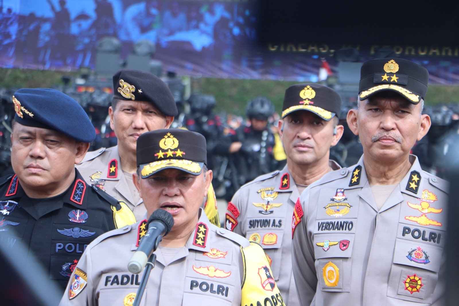 Jakarta – Wakapolda Metro Jaya Brigjen Pol. Suyudi Ario Seto menghadiri Apel Gelar Pasukan dalam rangka Pengamanan Pemilu dan pemeliharaan keamanan dan ketertiban masyarakat (Harkamtibmas) Tahun 2024 di Lapangan Singa Lodaya Cikeas Jawa Barat, Rabu (07/02/2024).