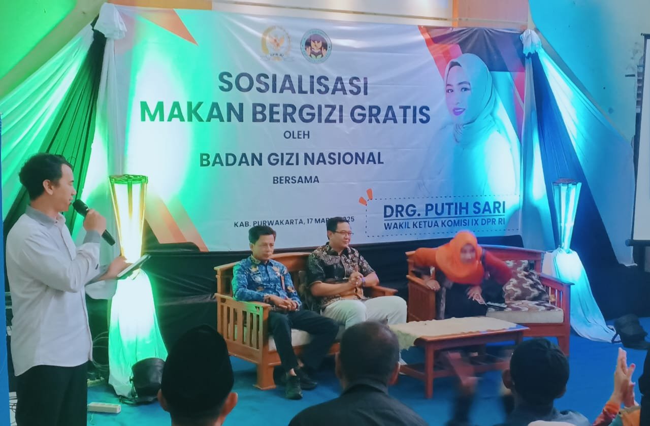 Sosialisasi yang dimulai pukul 14.00 WIB ini menghadirkan sejumlah tokoh penting, di antaranya Wakil Ketua Komisi IX DPR RI, DRG. Putih Sari, Anggota DPRD Purwakarta, Tedi Nandung, Camat Purwakarta, Aan, serta perwakilan dari BGN, Fatimah Zahra Santoso.