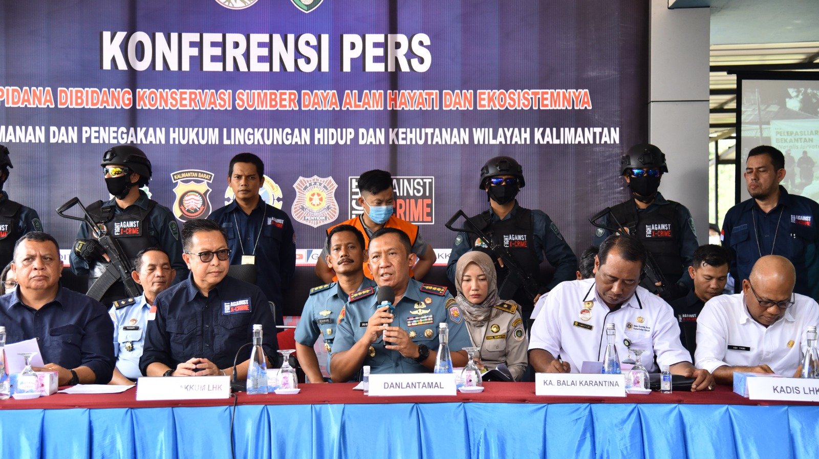 Hadir dalam acara Press Release diantaranya, Direktur Penegakan Hukum Pidana Lingkungan Hidup dan Kehutanan Dr. Rasio Ridho Sani, M.Com., MPM., Direktur Pencegahan dan Pengamanan Lingkungan Hidup dan Kehutanan Ir. Sustyo Iriyono, M.Si., Direktur Konservasi dan Keanekaragaman Hayati Lingkungan Hidup dan Kehutanan, Perwakilan dari Kejaksaan Tinggi Kalimantan Barat, Wadan Lantamal XII Kolonel Mar Budiarso, S.E., Kepala Omas LHK Provinsi Kaimantan Barat, Asisten Pidana Umum Kejaksaan Tinggi Pontianak, Direktur Reskrimsus Polda Kalbar, Kepala Kantor Imigrasi Kelas I Pontianak, Kepala Balas Konservasi Sumber Daya Alam Kalimantan Barat, Kepala Balai Karantina Pertanian Kelas I Pontianak.
