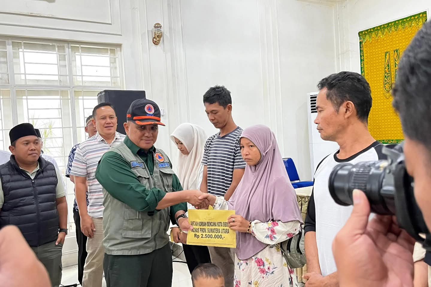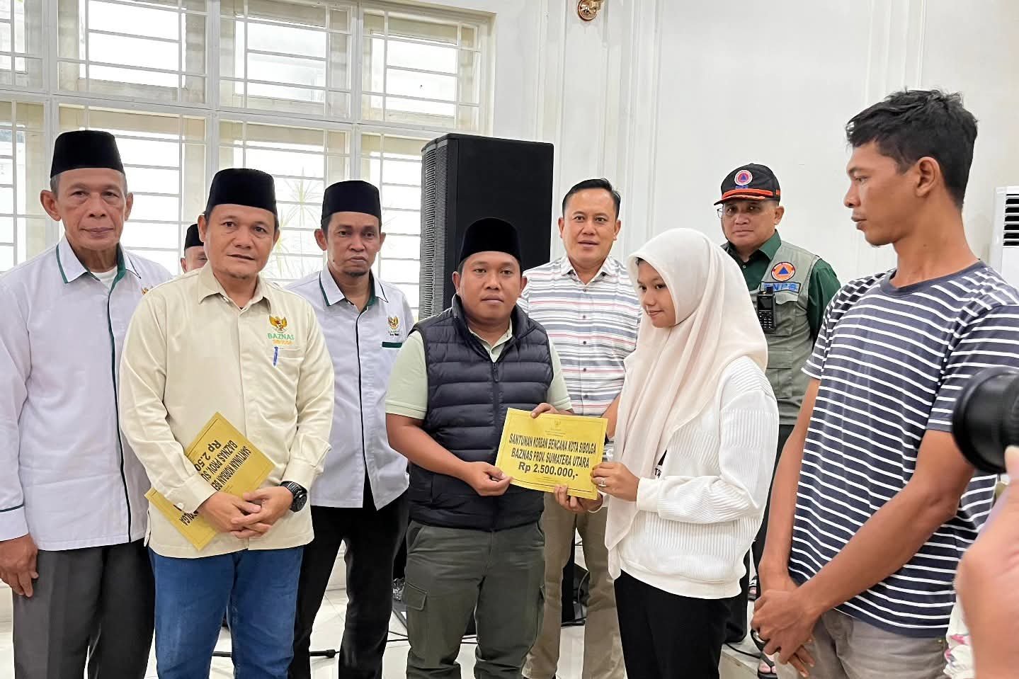 refubliknews.com,- Sibolga.Walikota Sibolga Bapak Akhmad Syukri Nazry Penarik,S.Pd,MH didampingi Ketua BAZNAS Kota Sibolga Kamil Gulo,S.Pd.I,M.Pd menyerahkan bantuan BAZNAS Provinsi Sumatera Utara kepada 30 orang Ahli Waris Korban Bencana Alam Kota Sibolga masing-masing Rp.2.500.000,-, Sabtu,3 Januari 2026 di Pendopo Rumah Dinas Walikota Sibolga.