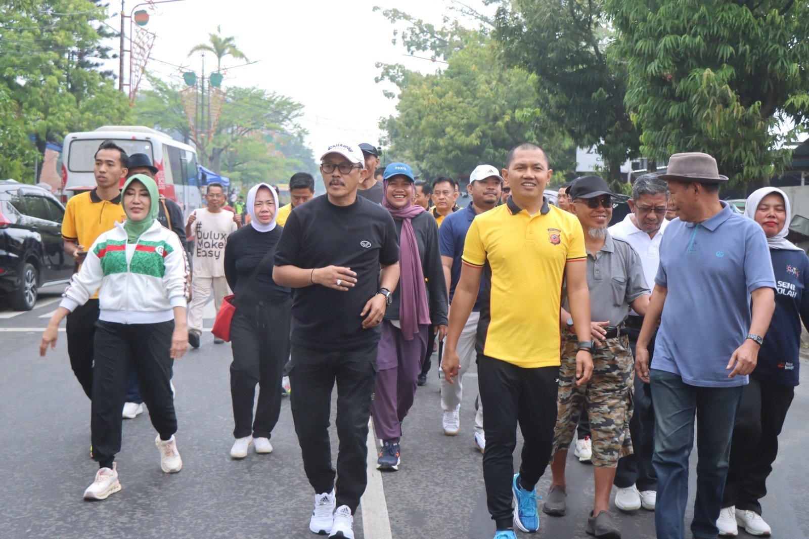 Ribuan masyarakat tampak antusias mengikuti kegiatan yang diisi dengan jalan sehat, senam bersama, serta penampilan dari Polisi Cilik Dermayu (PCD) Reborn.