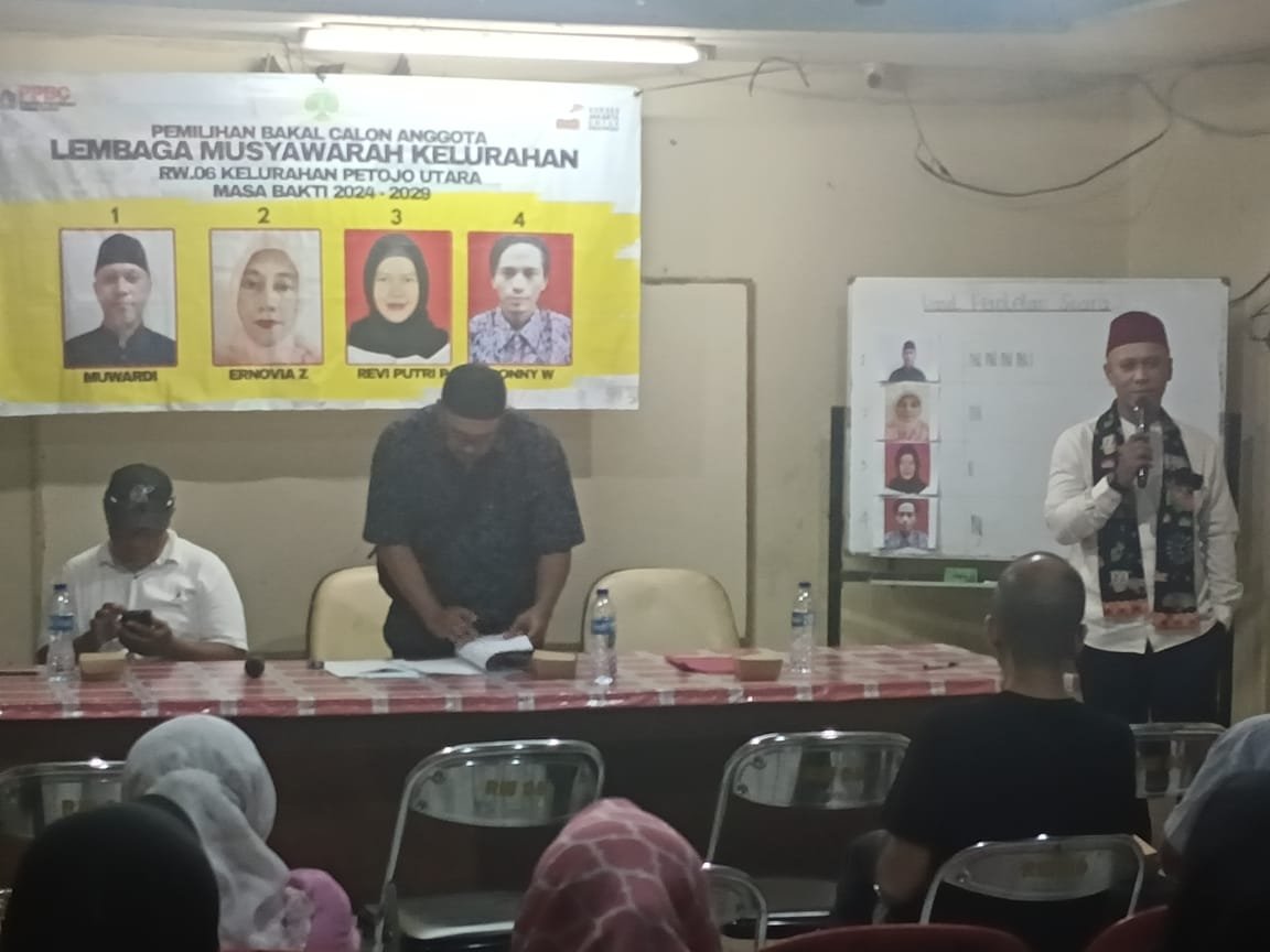 Empat calon tercatat dalam pemilihan kali ini, yaitu Muwardi, Ernovia, Revi Putri, dan Roni W. Setelah melalui proses pemungutan suara yang berjalan tertib dan transparan, Sdr Muwardi akhirnya terpilih sebagai LMK RW 06 Kelurahan Petojo Utara untuk periode 2024–2029.