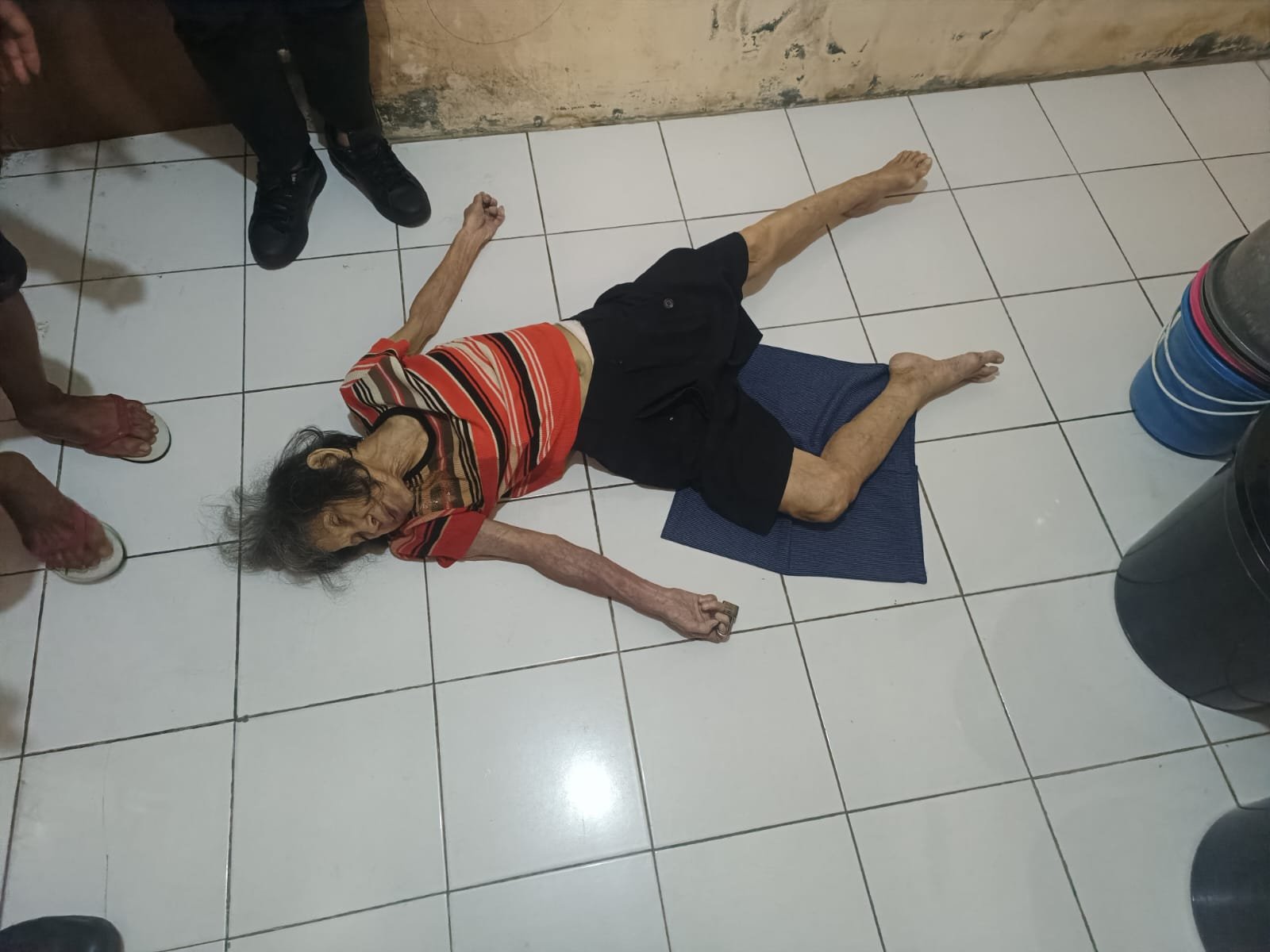 Saat tiba di lokasi, petugas menemukan seorang perempuan bernama Wong Pin Tjeuw (77) dalam kondisi terlentang di depan kamar mandi di dalam rumahnya.