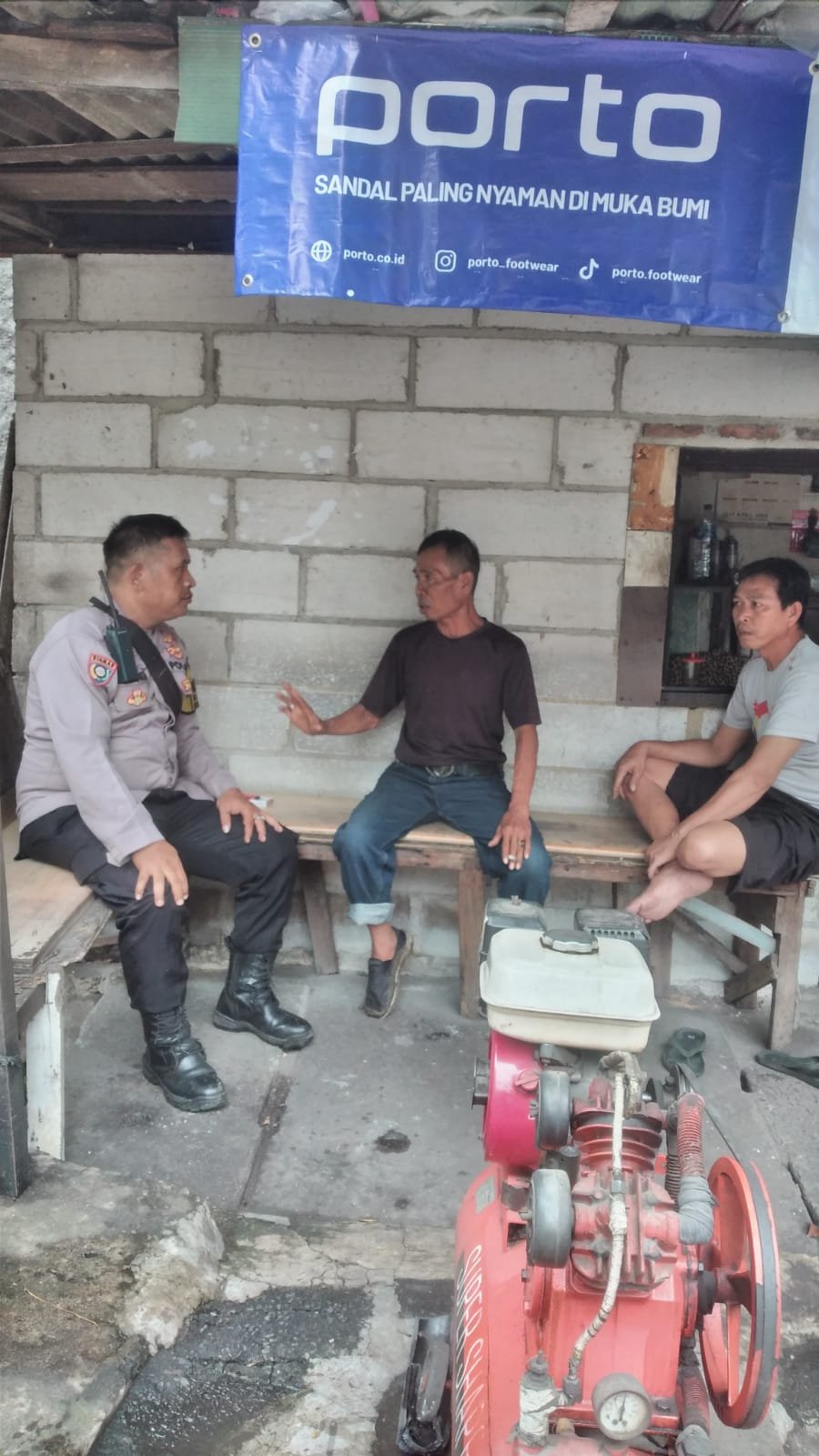 Dalam kesempatan tersebut, Aipda Mahajin berdialog langsung dengan warga setempat, Bapak Samsuri, menyerap aspirasi dan memberikan himbauan kamtibmas agar masyarakat tetap waspada serta aktif menjaga keamanan lingkungan.