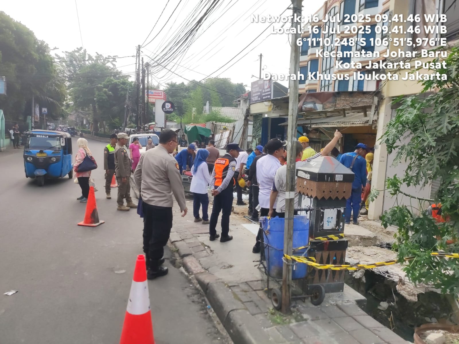Kegiatan tersebut turut dihadiri oleh Lurah Johar Baru Bapak Siswanto, Bhabinkamtibmas Polsek Johar Baru, serta petugas dari Dinas Perhubungan dan Satpol PP. Dalam giat tersebut, rombongan juga melakukan pemantauan terhadap proses pembongkaran bangunan yang berdiri di atas saluran air, guna mengembalikan fungsi saluran dan mencegah banjir serta dampak sosial di kemudian hari.