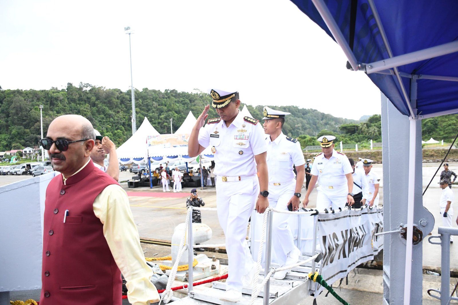 Pejabat Angkatan Laut India, Naval Component Commander (Commodore Prashant Handu), Athan India (Captain (Navy) Shiv Kumar), Konjen India, Komandan Kapal Perang India INS Kesari L15, Cdr Tejkant Munipatro beserta 237 Crew, Komandan Kapal Perang India MK IV LCU L57, Ltd Cdr Nitin Shipekar beserta 54 Crew.