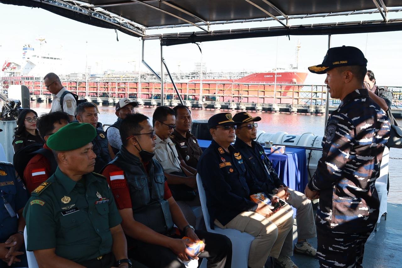 Komandan Lanal Dumai Kolonel Laut (P) Abdul Haris, S.E., M.M.D.S., yang diwakili oleh Palaksa Letkol Laut (P) Dharmawan Wijaksono menyampaikan bahwa Kegiatan patroli gabungan ini merupakan bentuk sinergi nyata antara TNI AL dan instansi terkait dalam menjaga kedaulatan maritim serta memastikan setiap aktivitas di perairan Dumai berjalan sesuai ketentuan hukum yang berlaku.