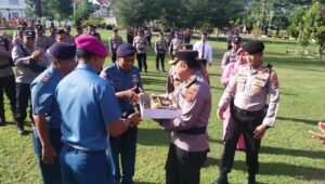 TNI AL, Simeulue,- Pangkalan TNI AL Simeulue berikan kejutan dan ucapan Hut Bhayangkara Ke-77 kepada Polres Simeulue, Polres Aceh Barat Daya, Polres Aceh Selatan, Polres Aceh Singkil secara serentak sebagai bentuk sinergitas TNI-Polri, Senin (03/07/2023)