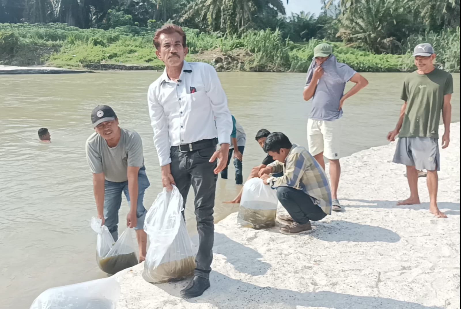 Yayasan Cinta Lingkungan Hidup Lentera Nusantara tabur 10 Ribu Benih Patin di Sei Tanjung, Minggu (21/1).