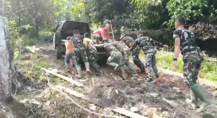 Tak lupa pasiter Kapten infanteri M Takwin Zulfikar menyampaikan Alhamdulilah untuk target hari ini kita sudah dapat 151 Meter pengecoran jalan, ,dengan Bismillah pasti kita bisa,” Ucapnya